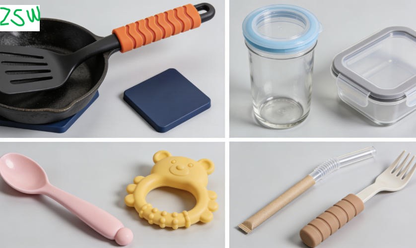 Raon leathan iarratas is féidir, a oiriúnú do oiriúintí earraí cistine, mar shampla clúdach láimhseáil spatula, cosa neamh-duillín; rónta coimeádán bia mar rónta cupán, stiallacha plaisteacha coimeádáin bia úr; earraí boird leanbh mar spúnóg bia comhlántach ceann bog, gaireas fiacla; páirteanna iompair bia ar nós ciseal frith-duillín crios iompair; táirgí teagmhála bia indiúscartha cosúil le ceann bog tuí, sleeve earraí boird frith-duillín agus mar sin de mhonarú táirgí éagsúla.